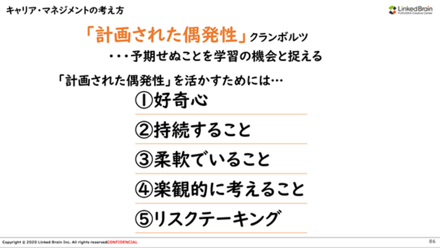 「計画された偶発性理論」を元にキャリア・マネジメントの考え方をお伝えしました。