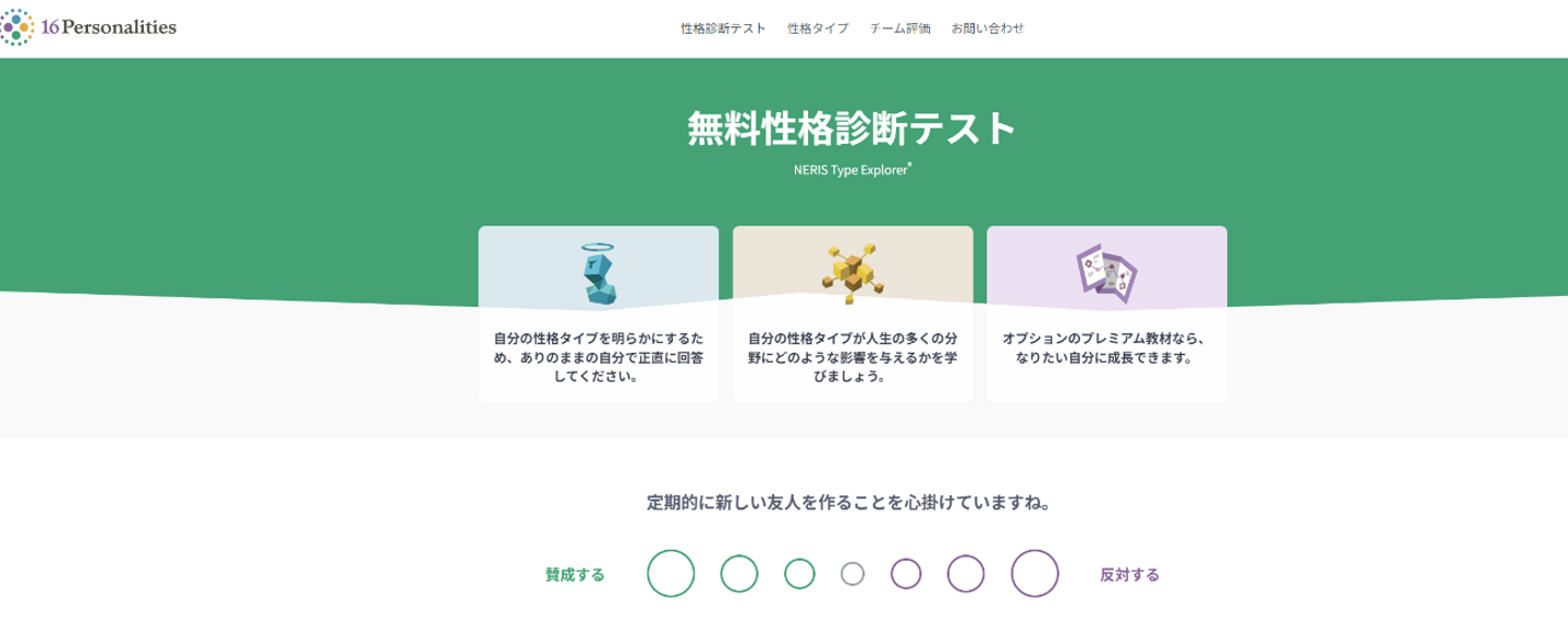 少し前に流行ったものを挙げると「16Personalities」という性格診断をしてくるものがありますね。(ちなみに私は提唱者でした。)