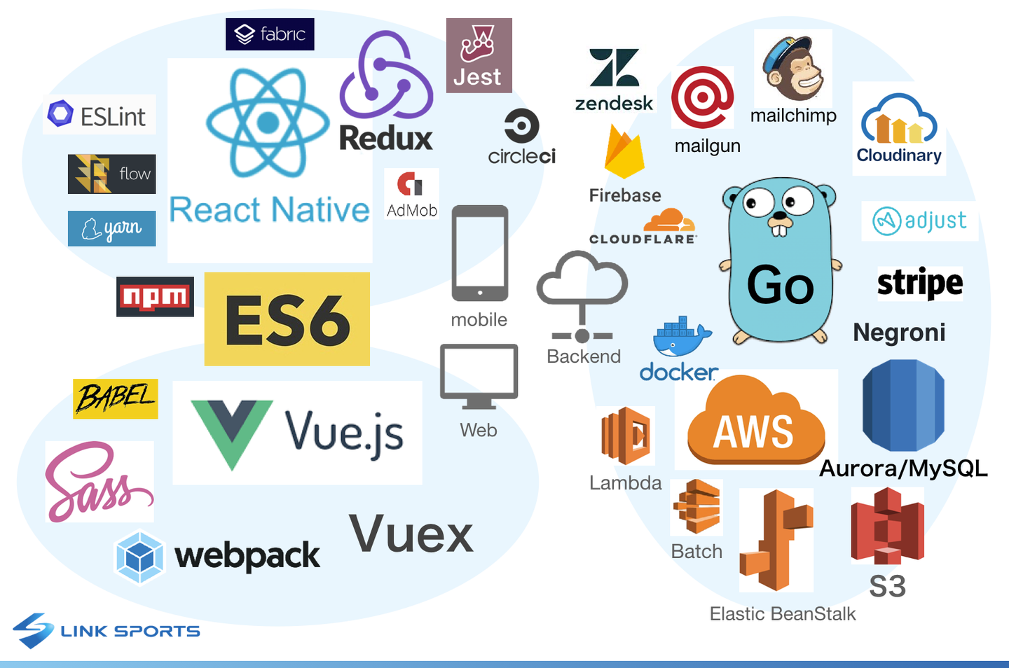 図にもあるようにバックエンドのインフラはAWS上に構築されています。APIは Go で書かれたRest APIです。Go はシンプルに書けて、処理が速いのが特徴です。