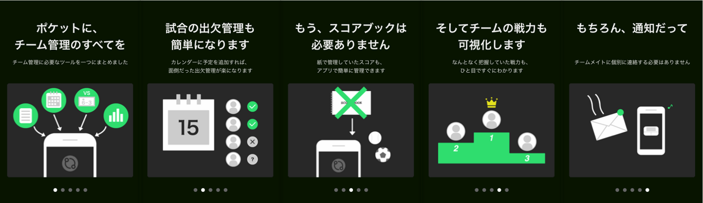 出欠管理やチーム連絡、スコア入力、個人実績などの管理を網羅しており、一度の作業でメンバーへの連絡・共有が可能になっています。チーム管理者の負担を大幅に削減することで、スポーツをより楽しく、より活発に続けられるよう支援します。