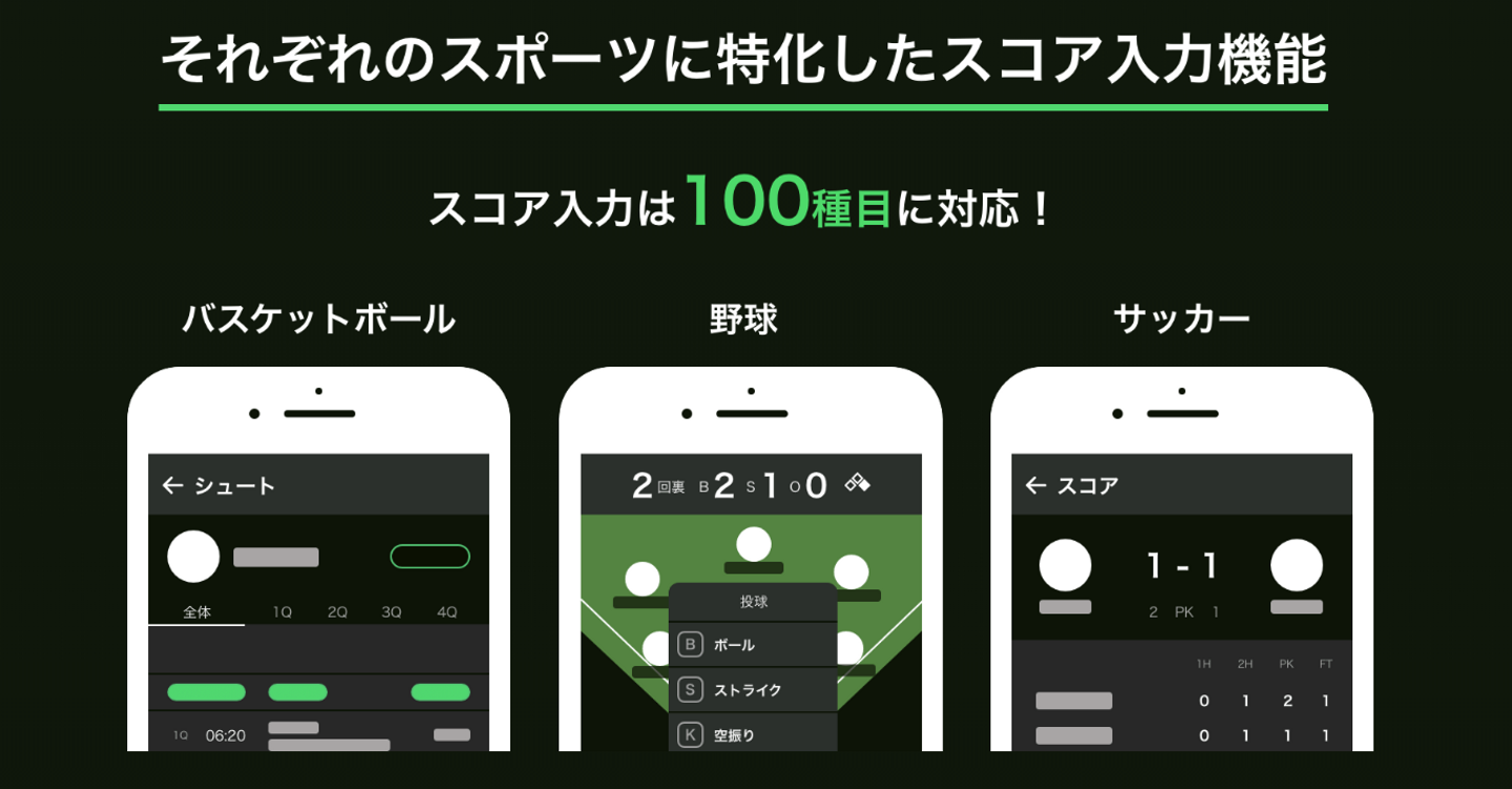 窪田さん:具体的にいうとその競技に適したスコアが記録できるようになっています。例えば、野球ならヒットやホームラン、サッカーであればシュートやアシストという項目があります。それらの競技に特化したスコアをTeamHubでは普段使い慣れたスマホを使って簡単に記録できるんです。
