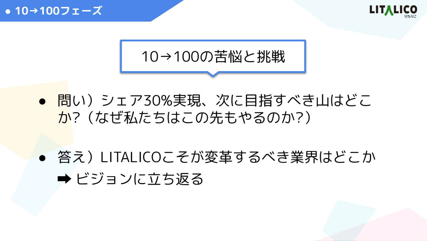 これからは、10→100へ挑戦していくタイミング。