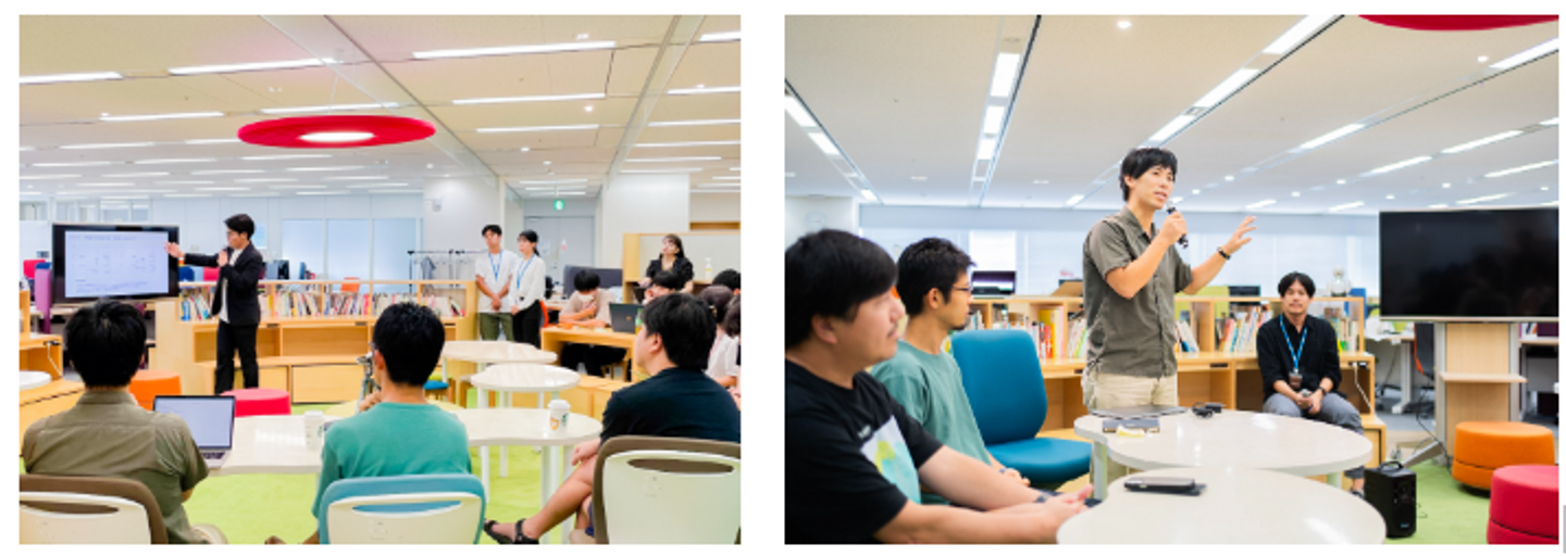 Day1の最後には、LITALICOワンダー https://wonder.litalico.jp/ のお子さまがIT×ものづくり教室でプログラミングやロボット政策に勤しむ様子を参加学生全員で見学しながら、簡単な授業内容を体験したのち、事業部長である毛利が事業について説明をしました。LITALICOワンダーでは、日本のZ世代には「創造力」が足りていないこと、教育でのICT機器利用率の低さという社会課題に着目。学び手である子どもたちに一方的に知識を付与するのではなく、主体的に経験や思考を育む一人ひとりのお子さまに最適な環境づくりを大切に教育プログラムを構築しています。