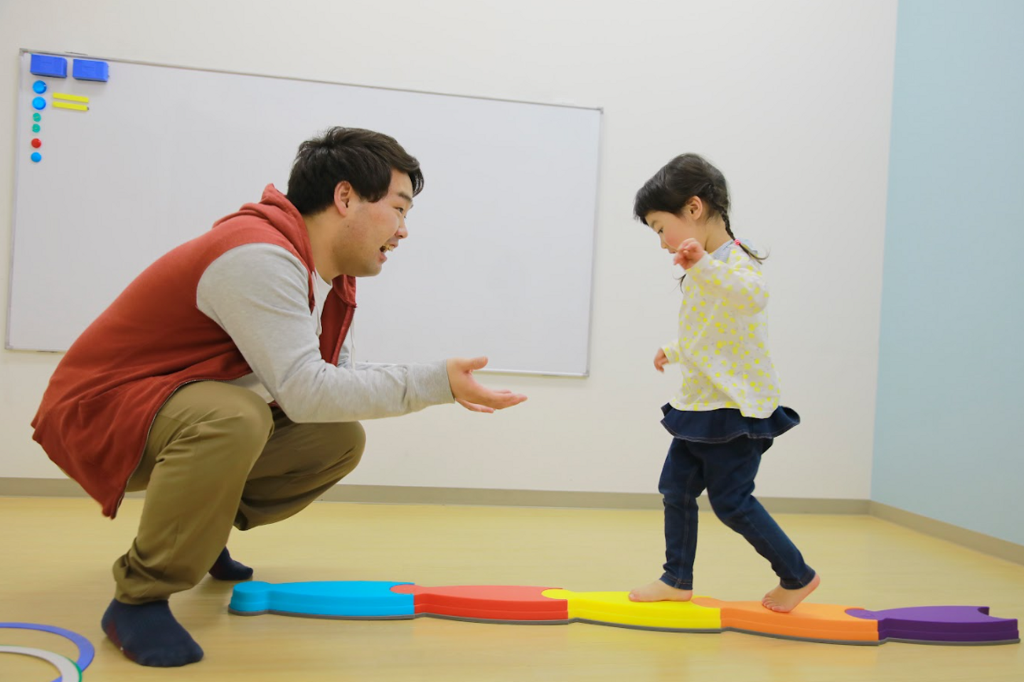 アセスメントの結果、お子さまは言葉でなかなか相手に思いや要求を伝えることができず、自宅でも一人遊びができずお母さんがつきっきりのことも多く大変なようです。