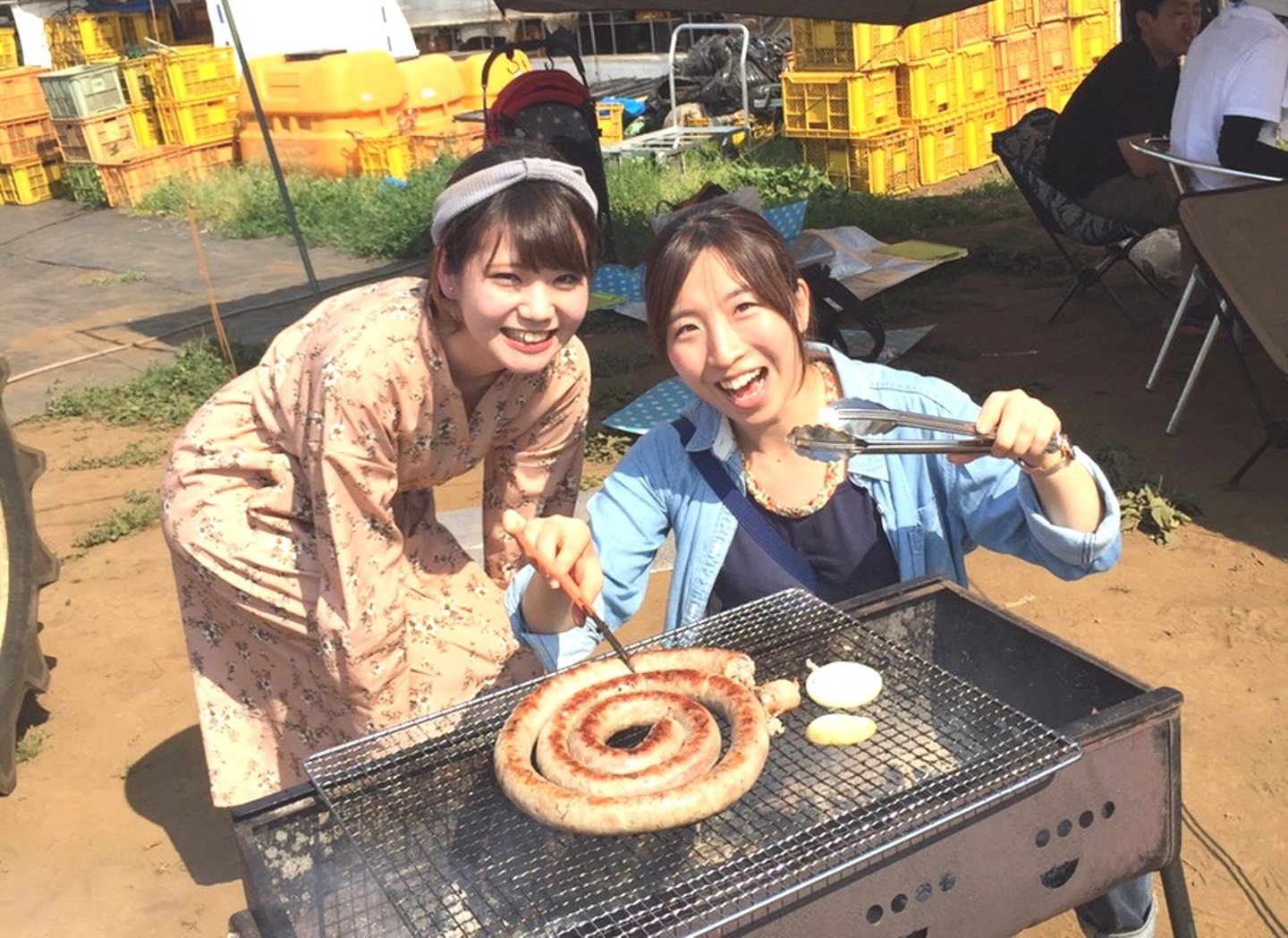 (最終プレゼンまでサポートしてくれていた森田(写真右)。入社後にお世話になっている農家さんの畑でBBQをした時の写真です♪)