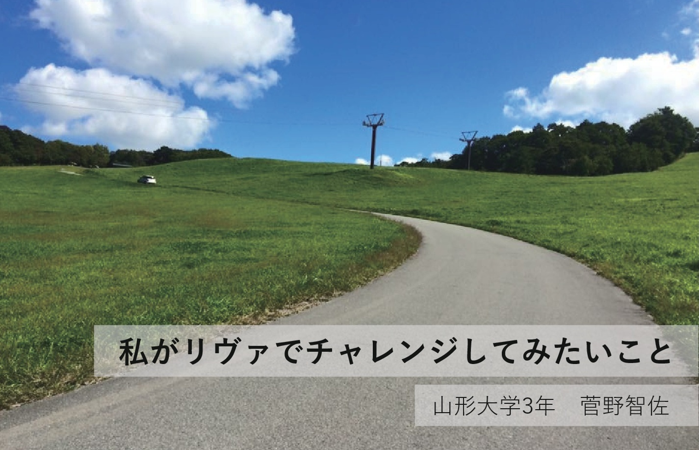 ( ↑ 実際のプレゼン資料。表紙に選んだのは、山形の中で一番好きな公園で撮った写真!)