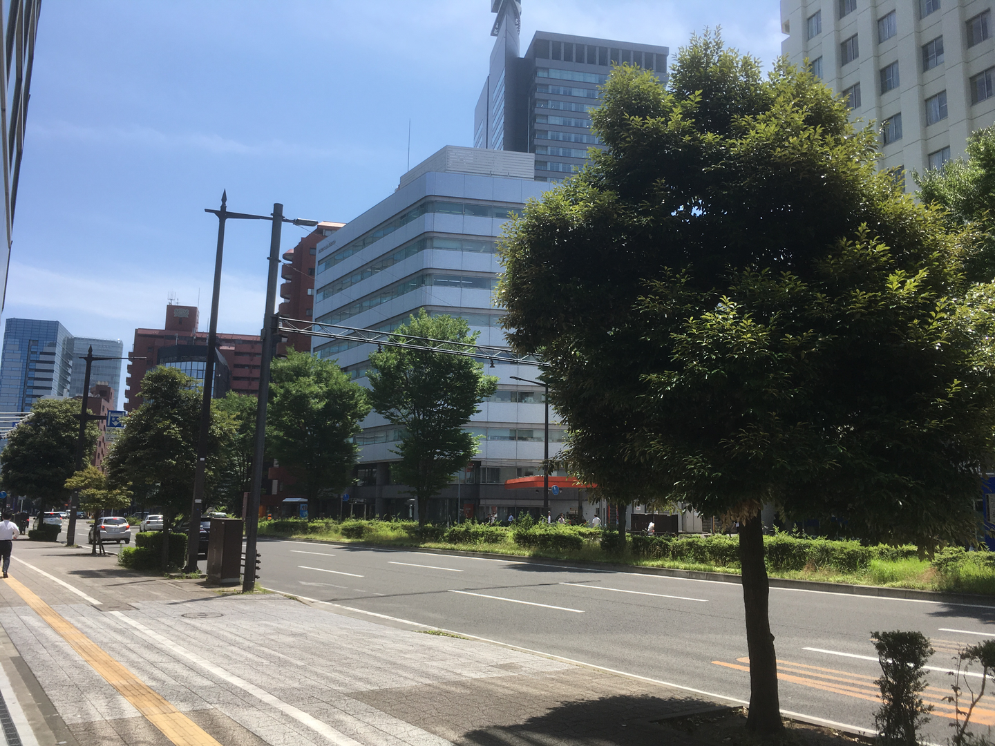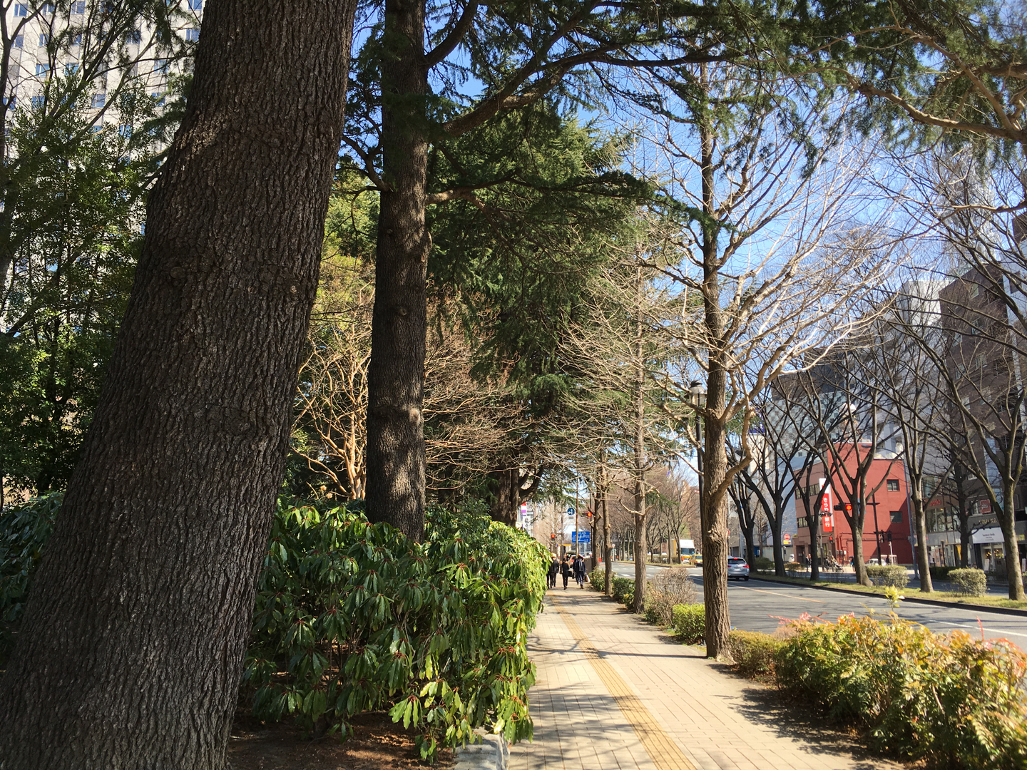 センター付近の道路には、自然豊かな木々や緑があふれている道路が多く、オフィス街でありながら、まさに「杜の都」といった風景が広がっています。