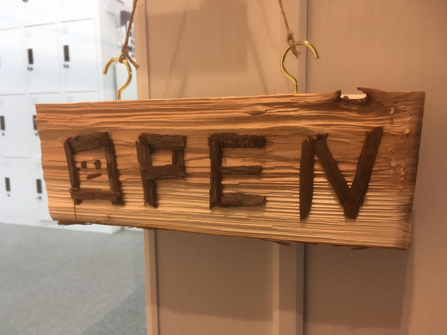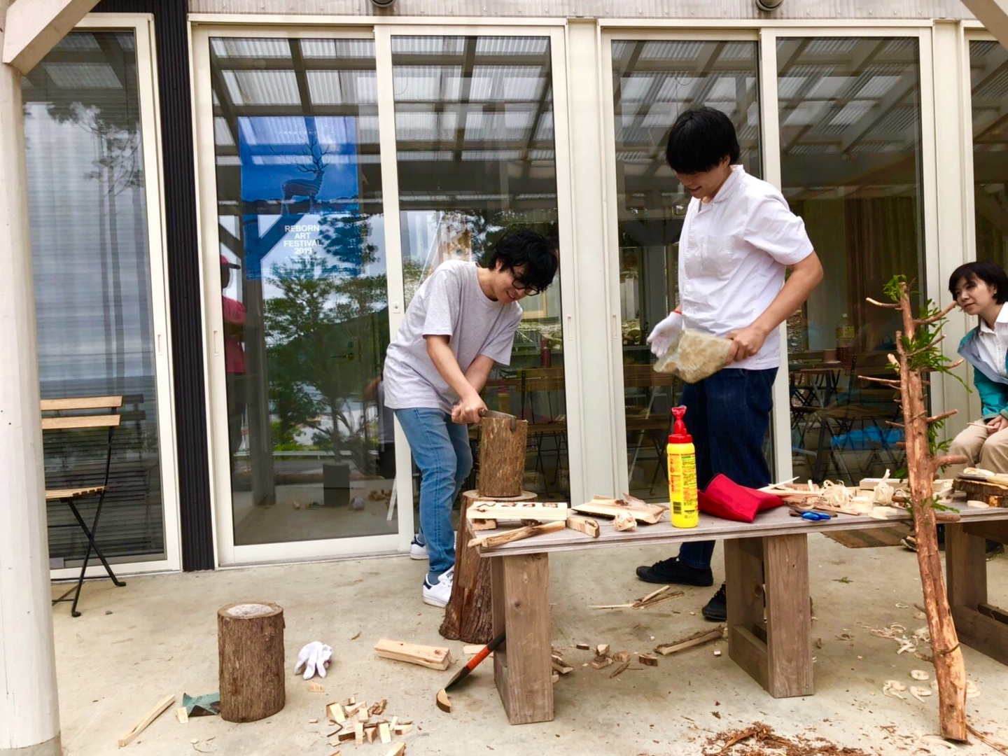 午後の木工の体験プログラムでは、石巻在住で6次産業化プランナーの森さんにご指導頂き、杉の木にそれぞれが手を加え、センターで使用する看板のほか、箸や箸置き、コースターづくりにも取り組み、自然の木の風合をそのままに、温かみのある作品に仕上がっています。センターにまた、新たな木の香りが舞い込みそうです。