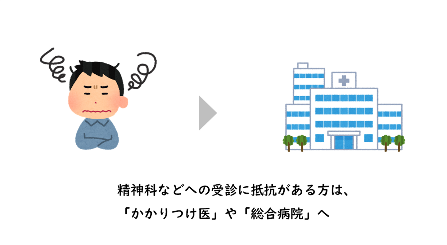 必要に応じて精神科などへの受診を促してくれるでしょう。本当に怖いのは、医療機関を受診しないままこういった状況を長引かせて、結果的に症状が悪化していくことです。症状の悪化とともに意欲の低下や身体症状が生じたり、「消えてしまいたい」「死にたい」といった考えが浮かぶことも多いため、早めの治療が大切なのです。