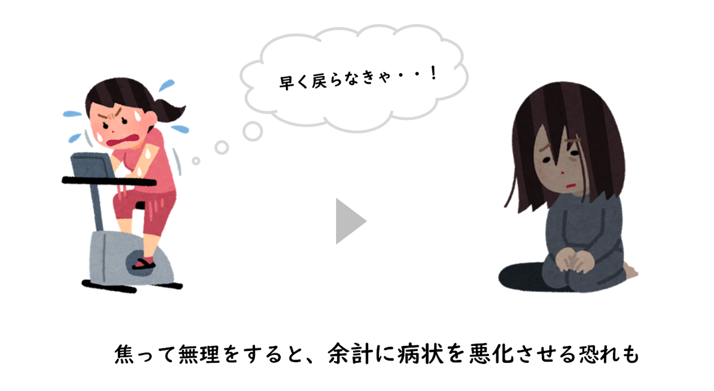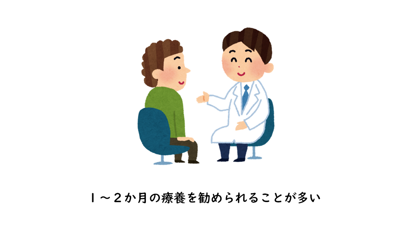 何度か診察に行くたびに、1〜3か月ずつ治療に必要な期間が延びていき、結果的に半年以上、場合によっては年単位の療養を要する場合があります。こうした場合は、まずは症状が落ち着くまで療養に専念することが大切です。
