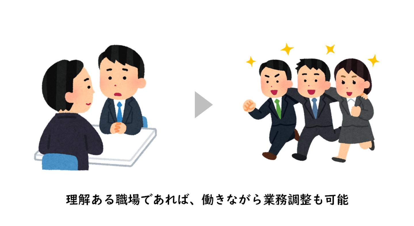 特筆すべきは、業務調整をしてもらえた3か月の間に、ご自身の仕事の仕方や職場内でのコミュニケーションを見直し、ストレス対処についても段階的に向き合われたことで、復帰後のパフォーマンスが以前より安定し、評価を上げたことです。もちろん、こういったケースは多くはありませんが、条件が揃えば、働きながら業務調整を行えることがあるのです。