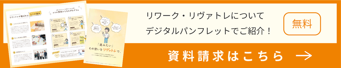 リヴァトレは、うつなどのメンタル不調でお悩みの方の復職・再就職をサポートするリワークサービスです。