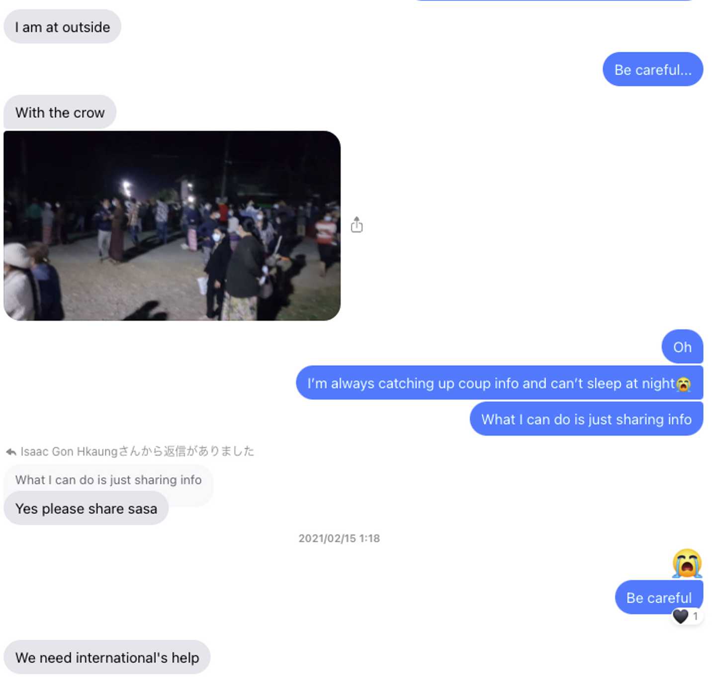 「ミャンマーの故郷の友達はみんな戦闘の用意をしていて僕は加勢できなくて心苦しいけど、立ち止まっていても仕方がない。俺は駅前でのデモや募金活動などできることをやるよ。」