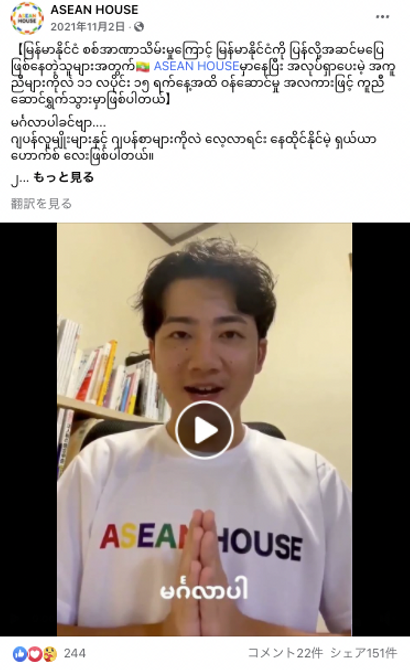 Facebookでミャンマー語の字幕をつけて動画で告知した結果、プチバズリを起こし150シェア以上を記録。