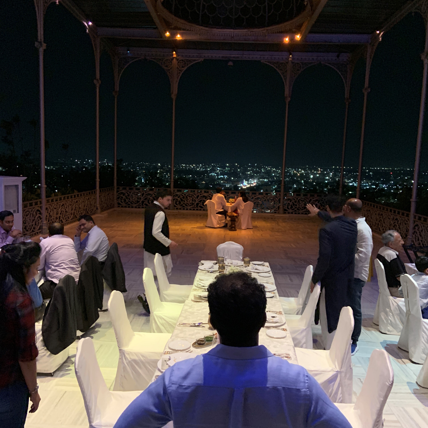 エントランスにて。インド出張の慰安を兼ねた、素晴らしいチームディナーでした。チームの仲を深めるだけでなく、日ごろの業務へのモチベーションアップにもつながります!