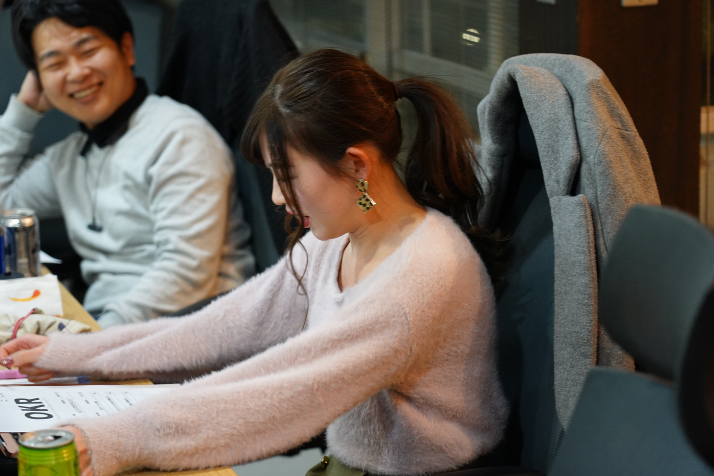 まずは、OKRに沿って今週出来たことや出来なかったことをひとりひとり順番に発表します。発表といっても、お酒を飲みながら、軽食をつまみながらなので、やや飲み会っぽい雰囲気。時には笑いを交えながら、ツッコミながらの報告会でテキパキと場が進行していきます。