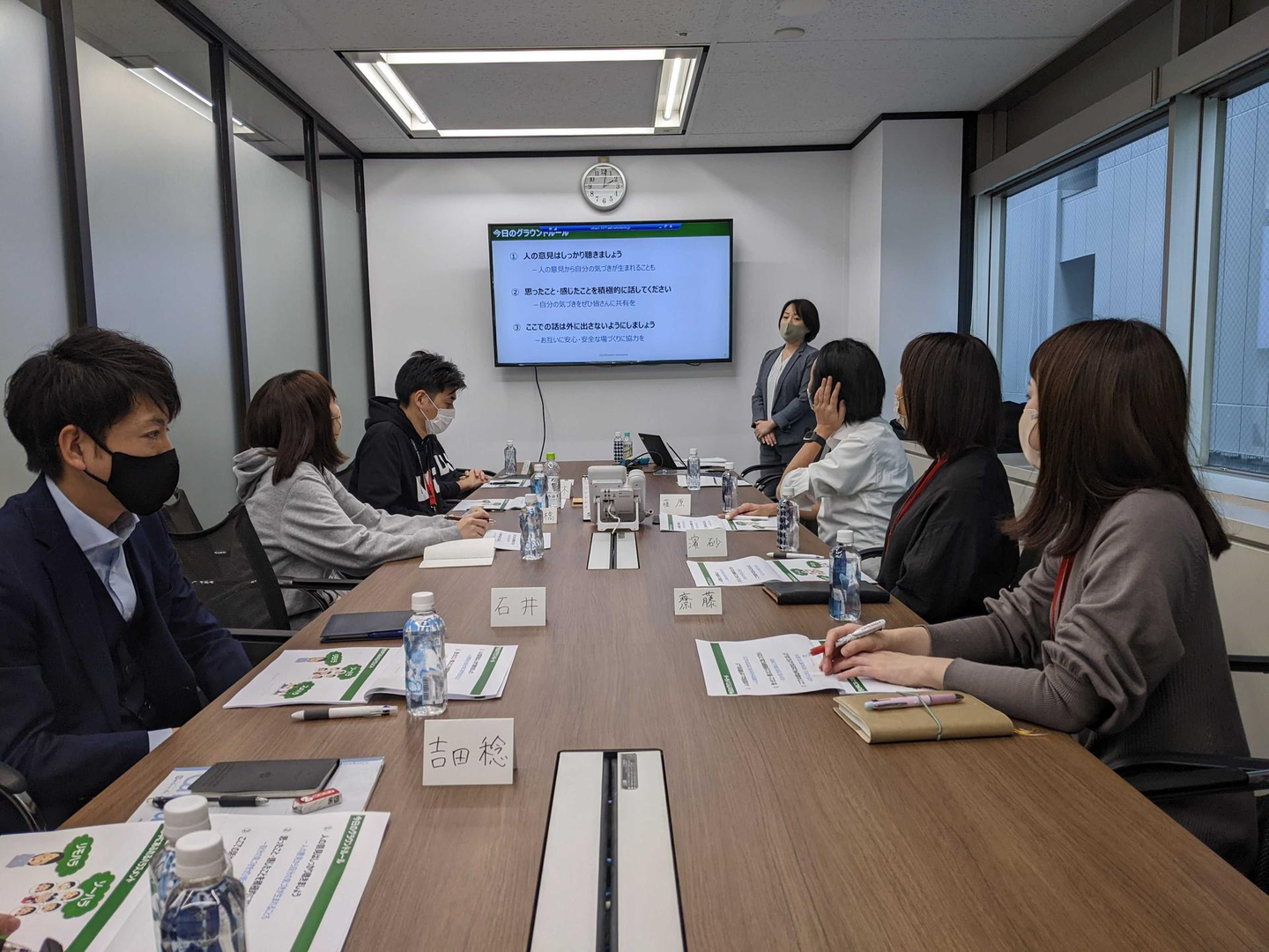 研修中の活発な意見交換のため、「人の意見はしっかり聴きましょう」「思ったこと・感じたことを積極的に話してください」「ここでの話は外に出さないようにしましょう」というルールのもと、3時間の長丁場でワークも交えながら研修を受けました。