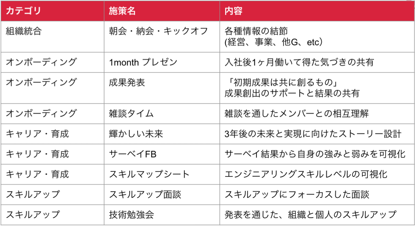 これまでも行っていた組織施策や1on1はもちろんですが、何気ない雑談も大切にしていて、