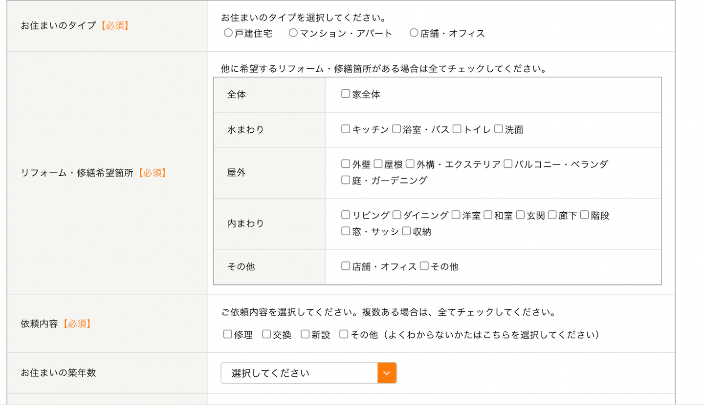リフォマは、リフォームをしたい個人が、施工業者から相見積をとることのできるプラットフォームです。Webサイトで「お住まいのタイプ」「リフォーム箇所」「依頼内容」「築年数」などの情報を入力いただくと、その情報を元に、リフォマに加盟している施工業者から見積をとることができます(リフォマの加盟店は、ローカルワークスが審査済みの信頼できる業者です)。