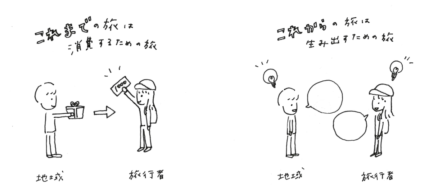 伊藤 「地域に行って、提供されるものを一方的に消費する」のが今までの旅だとしたら、これからの旅は「地域の豊さを受け取り、旅人の経験を受け取る、たがいにおすそ分けし合う」旅になると思うんです。そういう旅の方が、生き方に「幸せ」を受け取れると思いませんか?