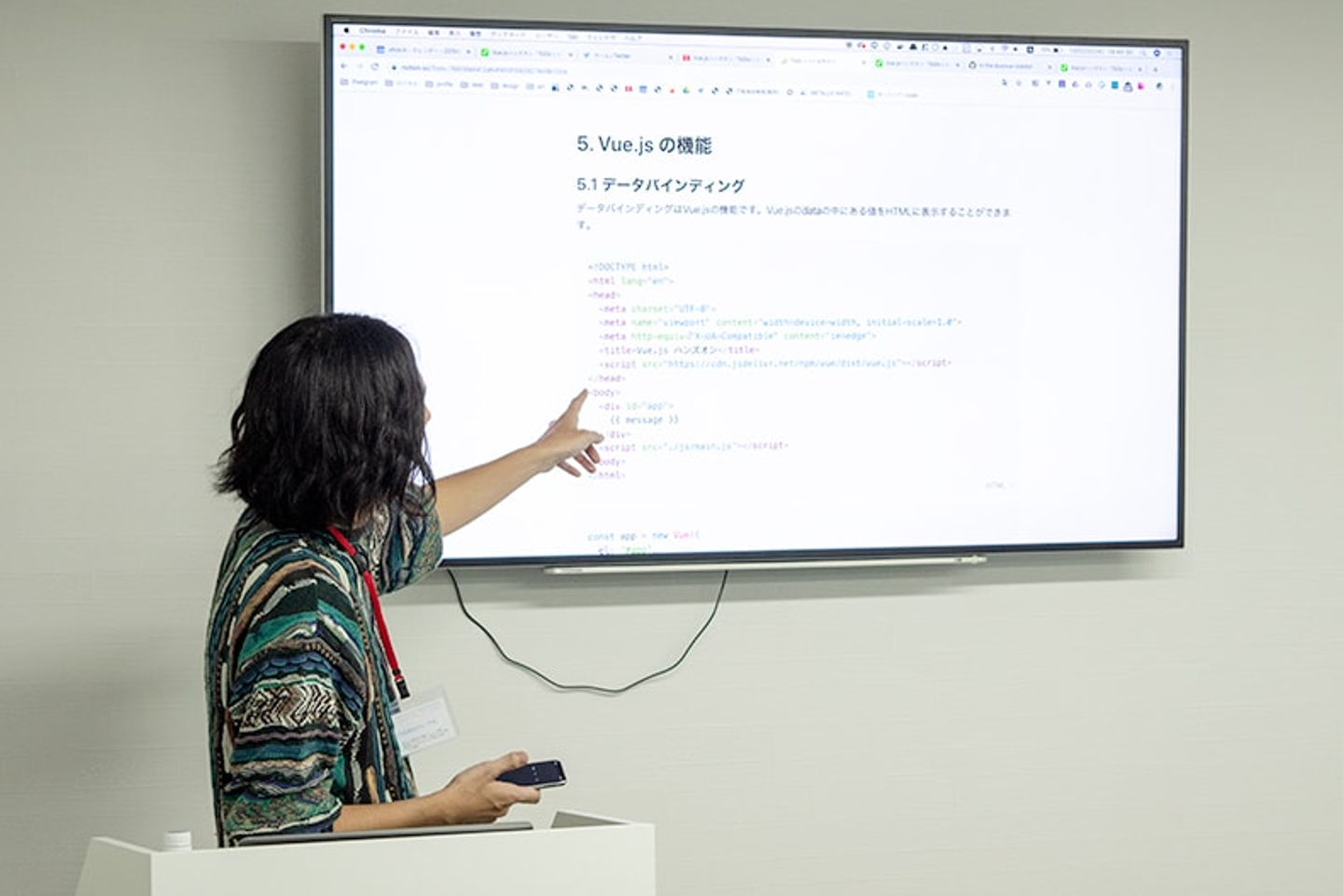 まずToDoリストを作る前に、Vue.jsの主要な機能を教えていただきました。