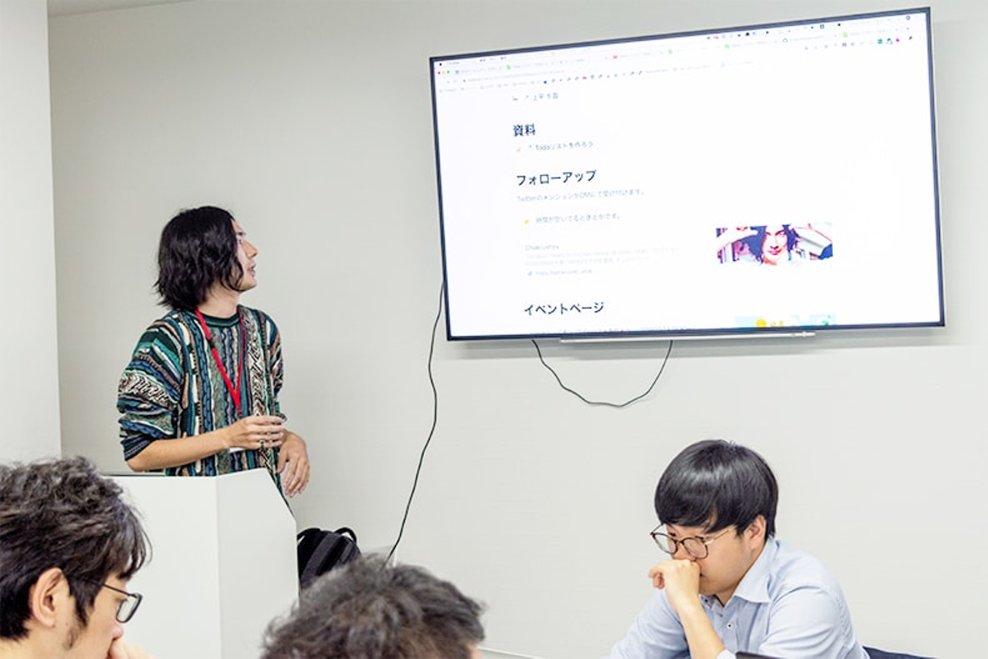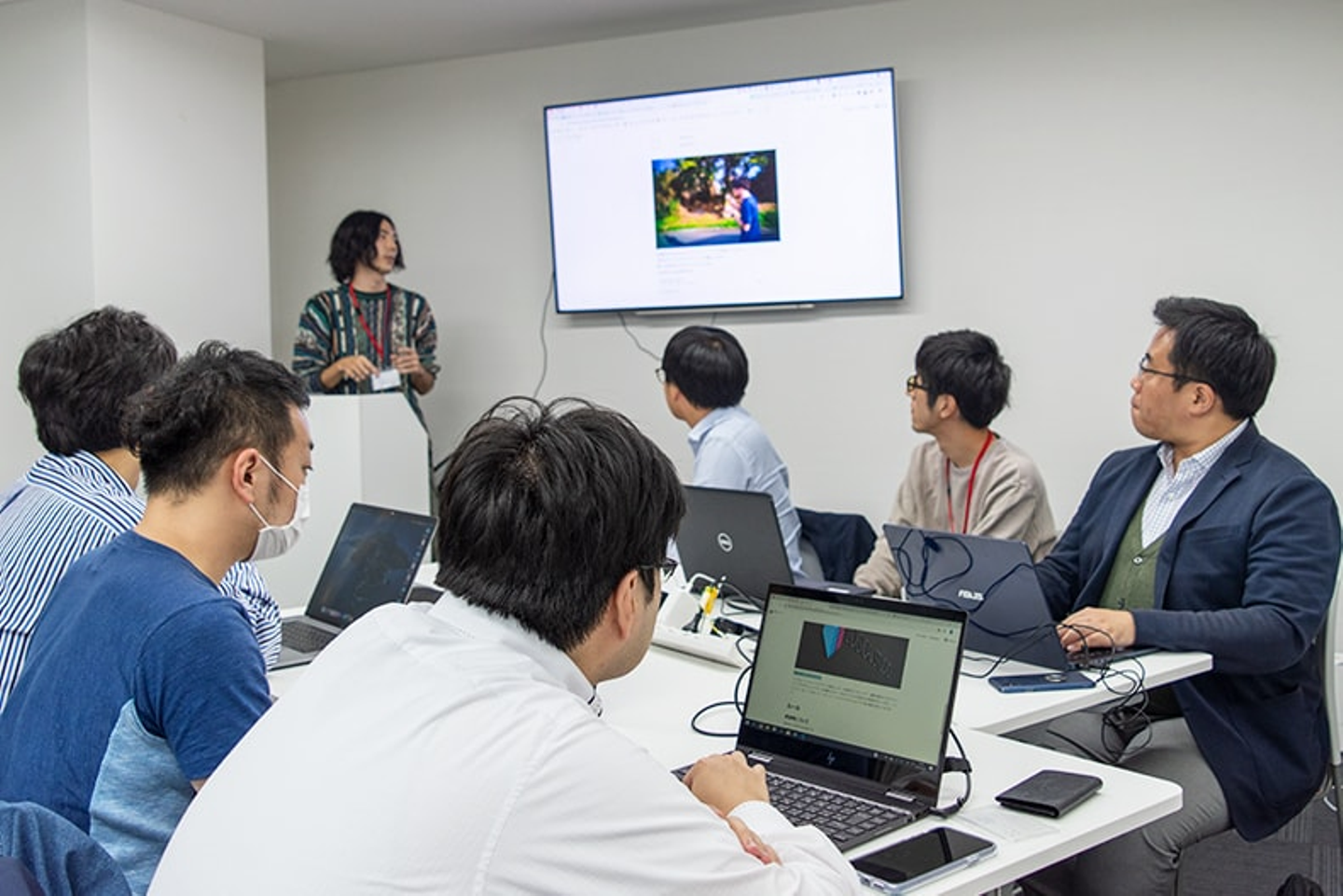 説明資料は会場内のディスプレイに映し出される他、参加者の端末からも閲覧可能です!