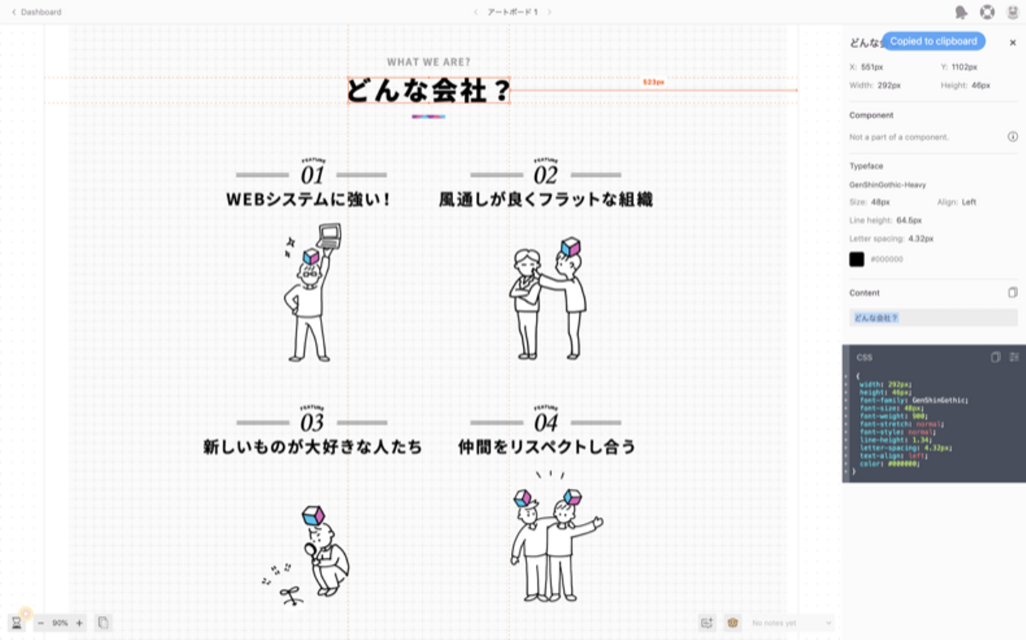そこをクリックすると「Copied to clipboard」が表示され、コピー完了です!