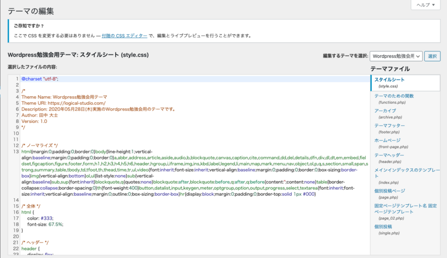 3.固定ページのデザイン変更〜テンプレート準備〜