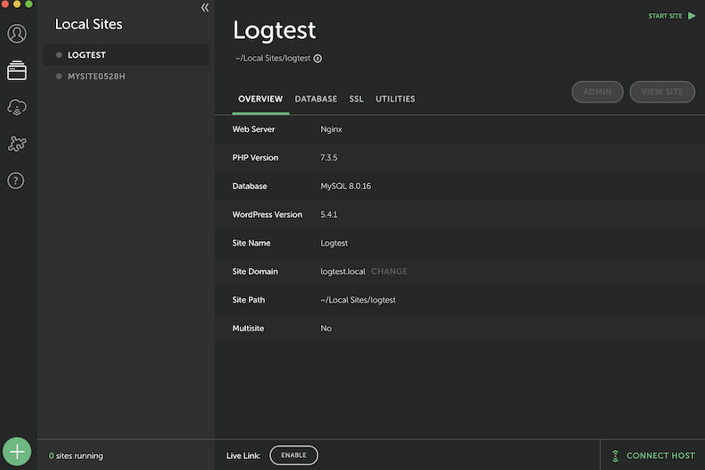 Local by Flywheelインストール後、各種設定を済ませると、こちらのホーム画面が表示されました!