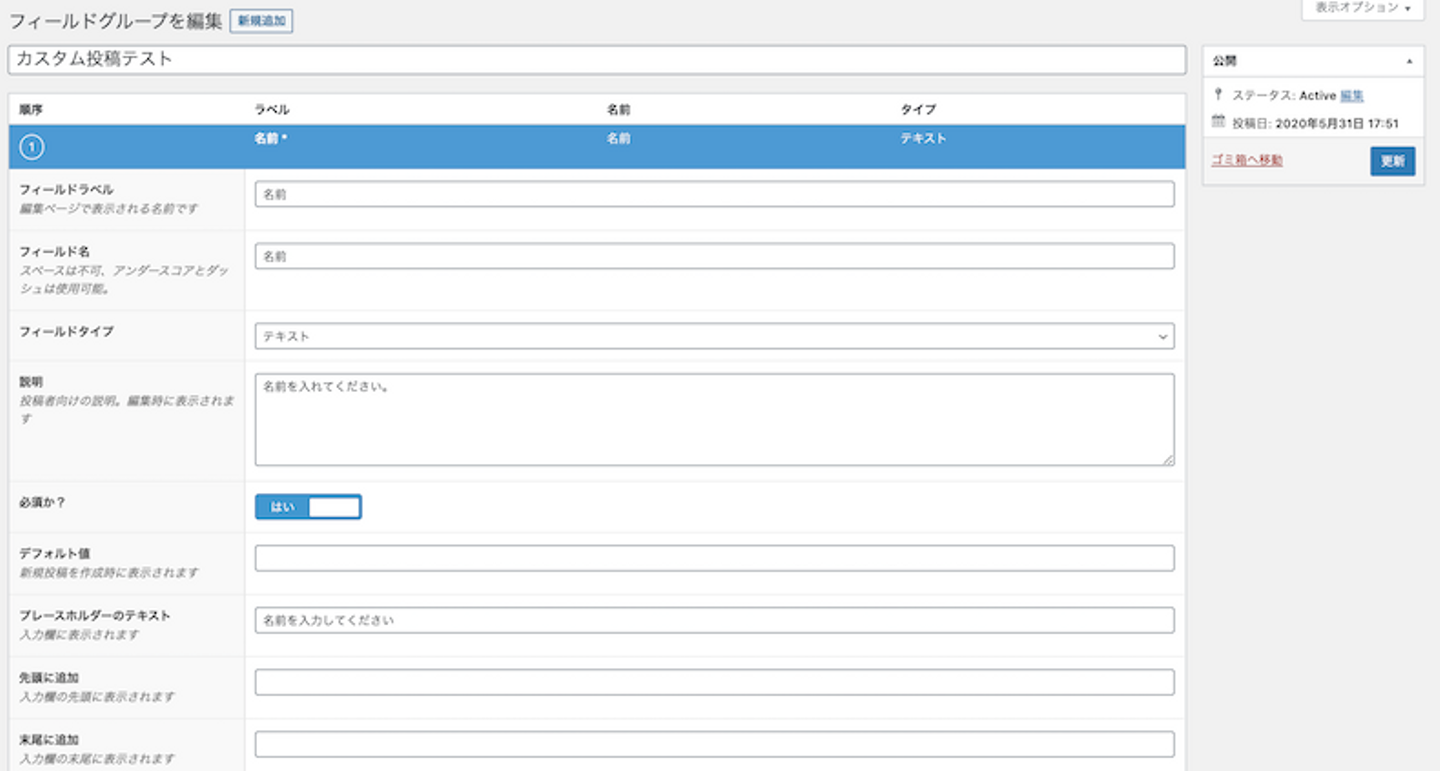 2.カスタムフィールドの追加