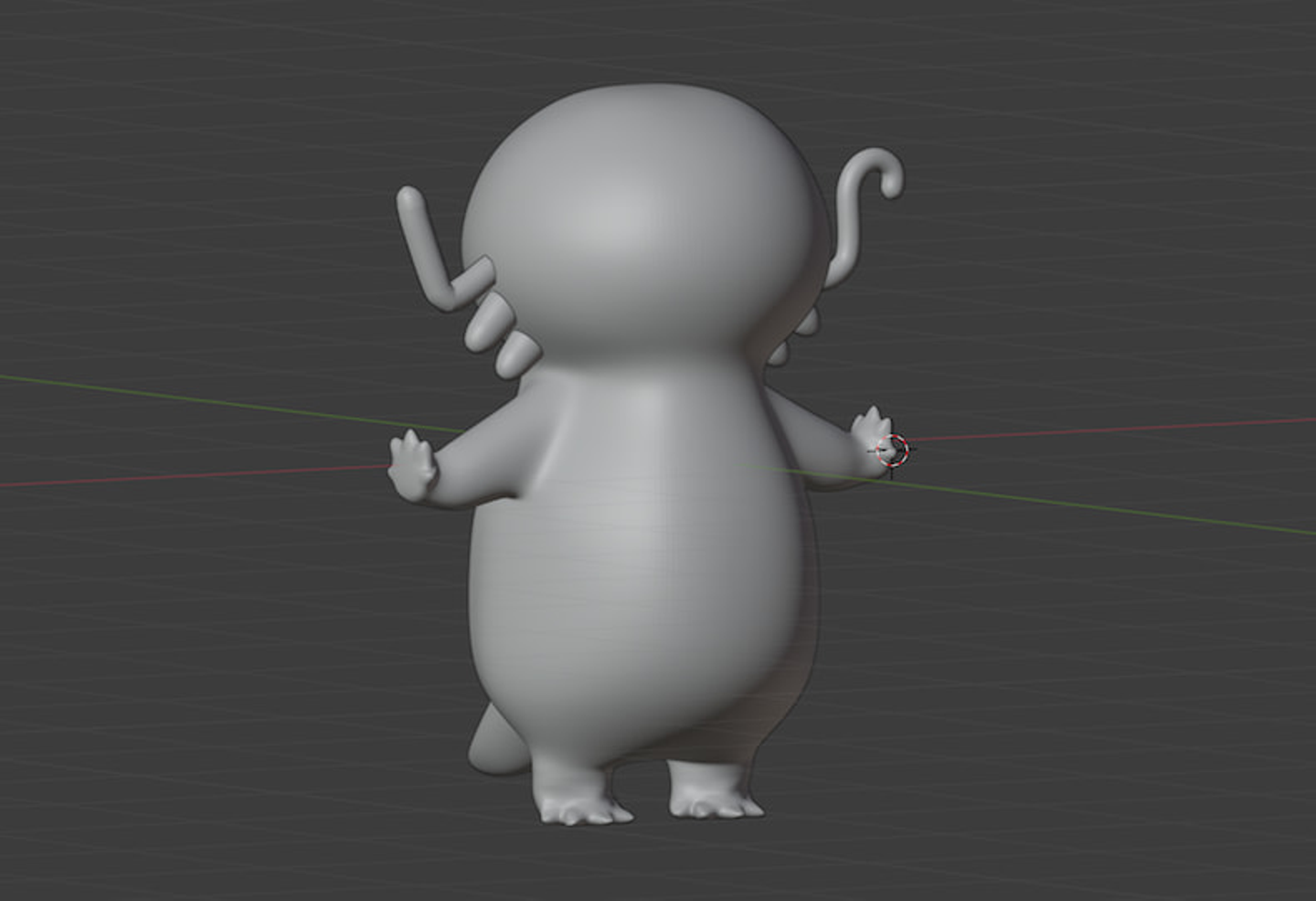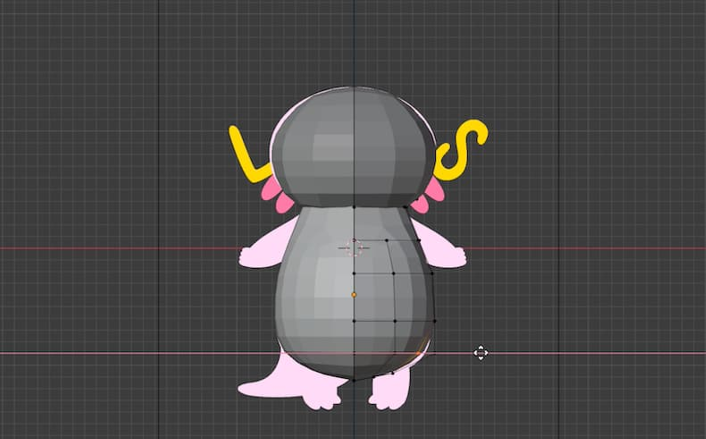 ② 頂点を選択して押し出し [Eキー]で尻尾を伸ばす