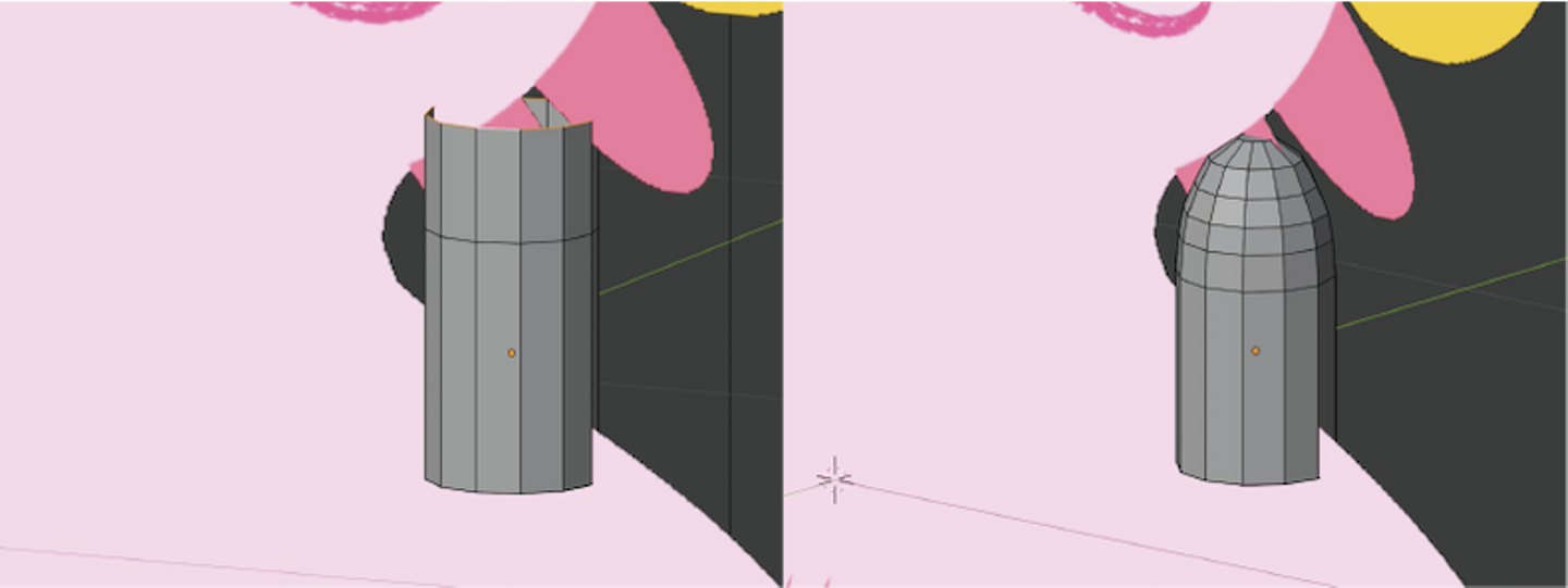 ③ 先端部分を丸くするために削除した面から押し出し [Eキー] で複数回伸ばす