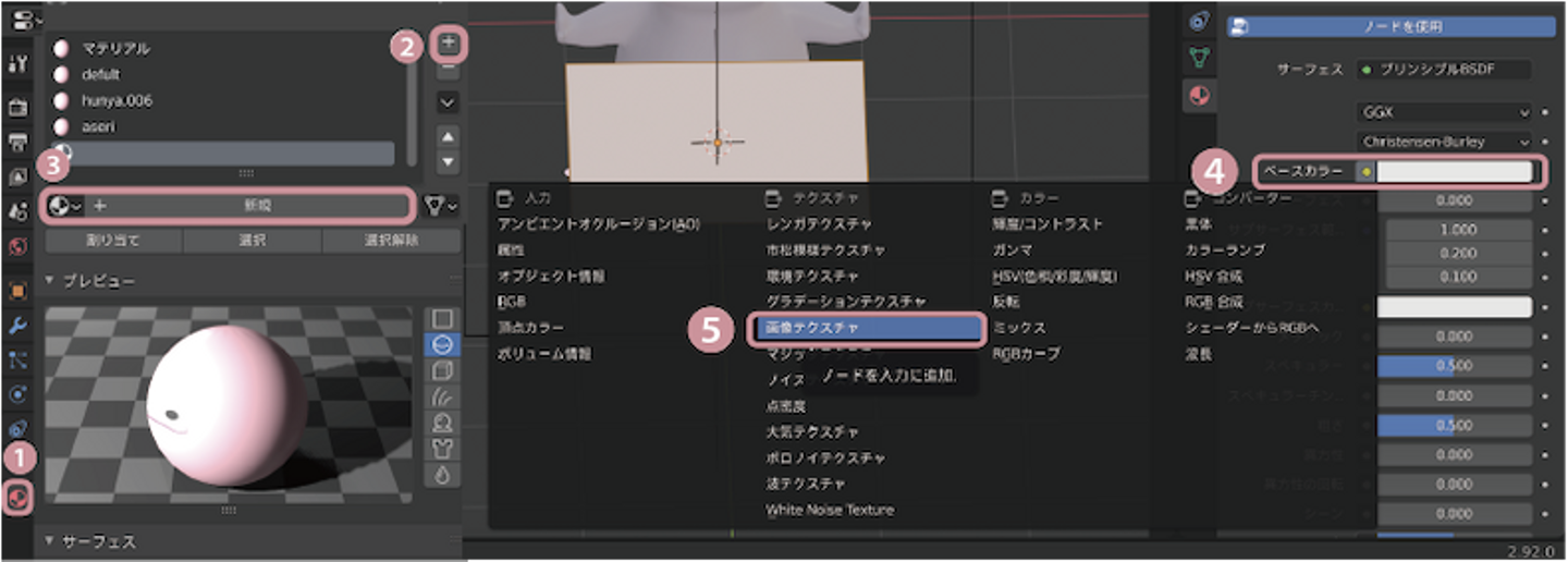 マテリアル : オブジェクト上の質感を設定するもので、3Dソフトの中で設定