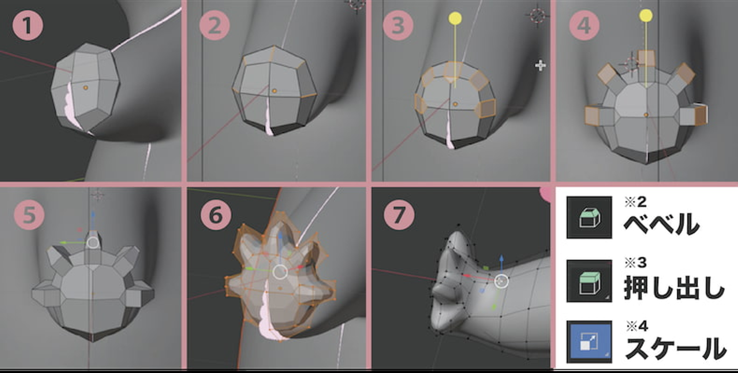 ④⑤ ※4スケール[Sキー]で指の先端部分を縮める