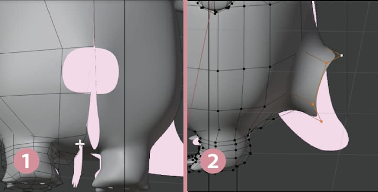 ① 尻尾の部分に面を削除 [Xキー]で穴を空ける