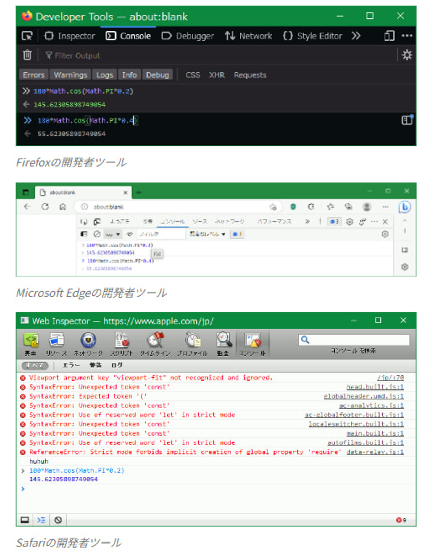 FirefoxやChromiumの場合は、入力途中の式も即座に評価されます。