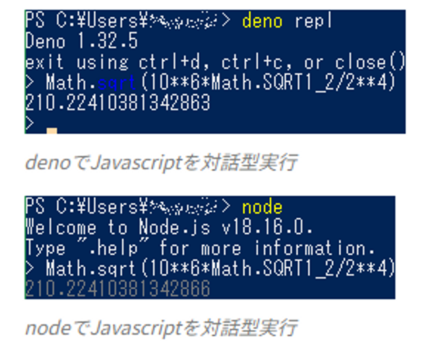 ruby, python, deno, nodeなどがインストール済みであれば、それらを対話型実行で使いましょう。