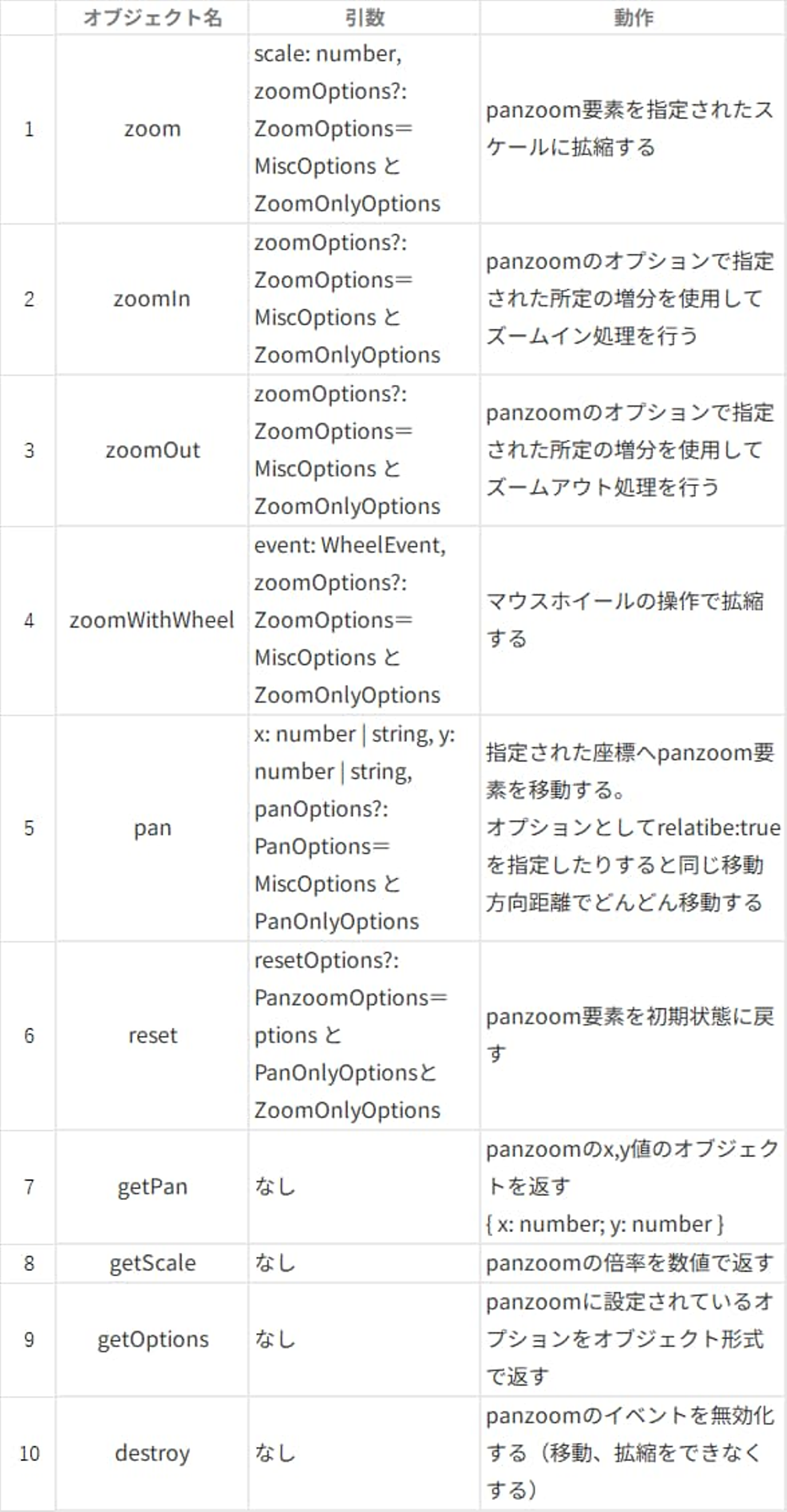 panzoomで用意されているオプションやオブジェクトをいくつか紹介します。
