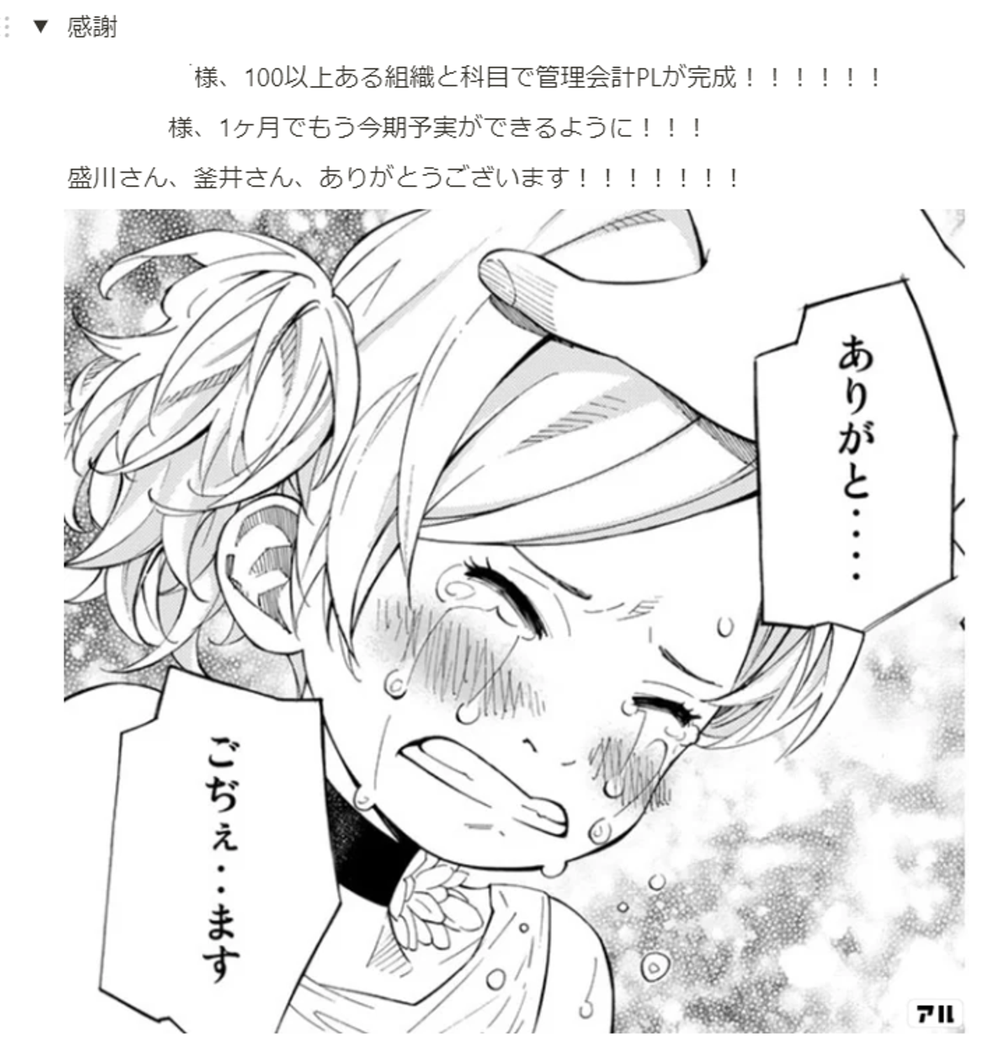 *社内の週次全体MTGにて(SNS投稿OKとなっているコマです)