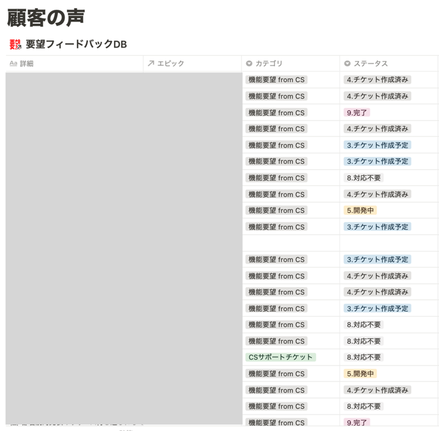 CS1人の声ではうまく吸い上げきれなかった要望などが多く集まってくるようになると、明確にプロダクトの課題として認識されるようになります。