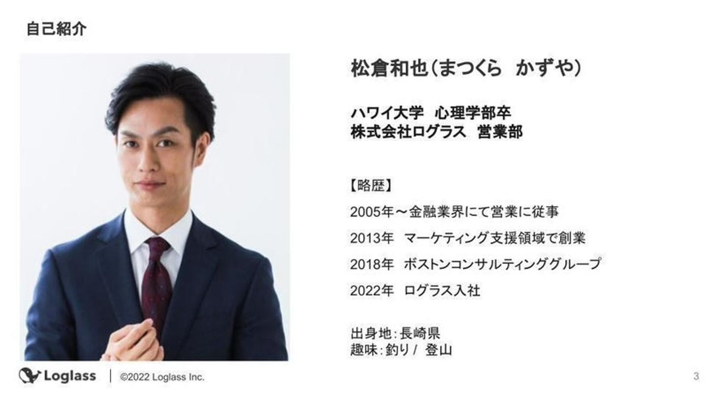 みなさま、こんにちは。ログラスのセールス担当、松倉です。 この記事は【ログラス Businessチーム Advent Calendar 2022】の20日目(12月20日分)にエントリーしています!12月は、ログラス社員が毎日noteを投稿してますので、是非ご覧ください。