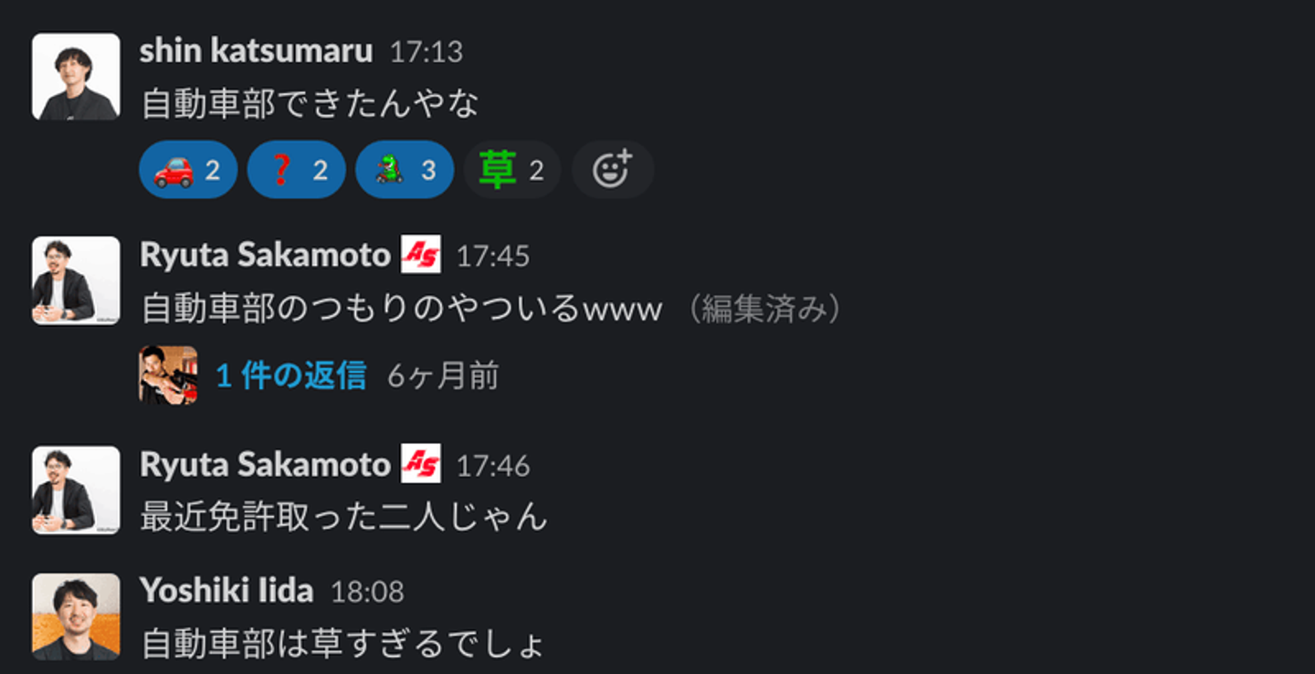 ただこのタイミングでは、特に活動は進みませんでした。 自動車部と勘違いする社員も出る始末です。