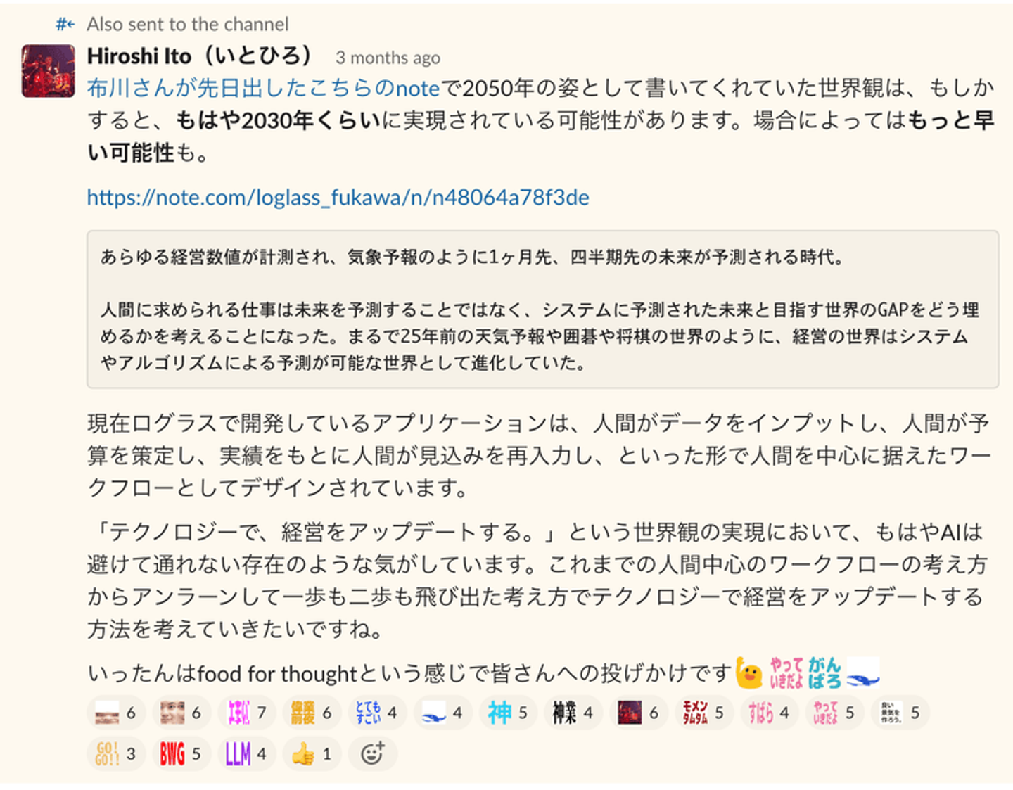 当時、私は社内の雑談チャンネルに以下のように投稿しました。