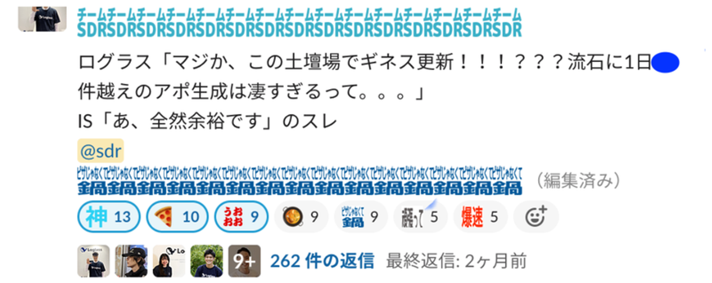 チームで目標を達成するという意識を醸成するために、slackでみんなで商談獲得目標達成までカウントダウンをしていくという単純な施策です!