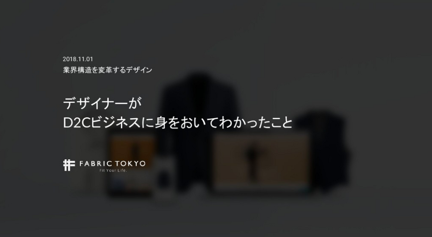 FABRIC TOKYOの中筋率いる開発チームで、デザイナーを担当しております、菅と申します。開発チームは、我々以外にサーバーサイド、フロントエンド、デザイナー、というチーム編成で仕事をしています。オーダースーツのビジネスにも注目が集まっている昨今、お客さまに「良い体験」をしていただくためには、デザイナーはどのような思考で、何をデザインしていくべきなのか?またD2Cというビジネスモデルの中で、その強みを活かすためのデザインプロセスやビジネスへの関わり方についてお話できればと思います。 <デザイナーから見たD2Cについて>