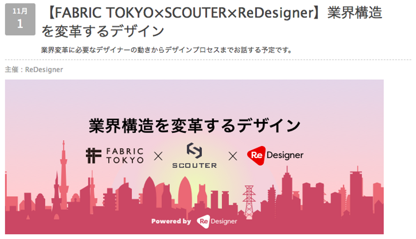 今回、ソーシャルヘッドハントサービス「SCOUTER」さん、UI/UXデザインカンパニー「Goodpatch」さん、そしてFABRIC TOKYOの3社でデザイナー向けのイベントを開催したので、その内容をレポートとしてご紹介したいと思います。