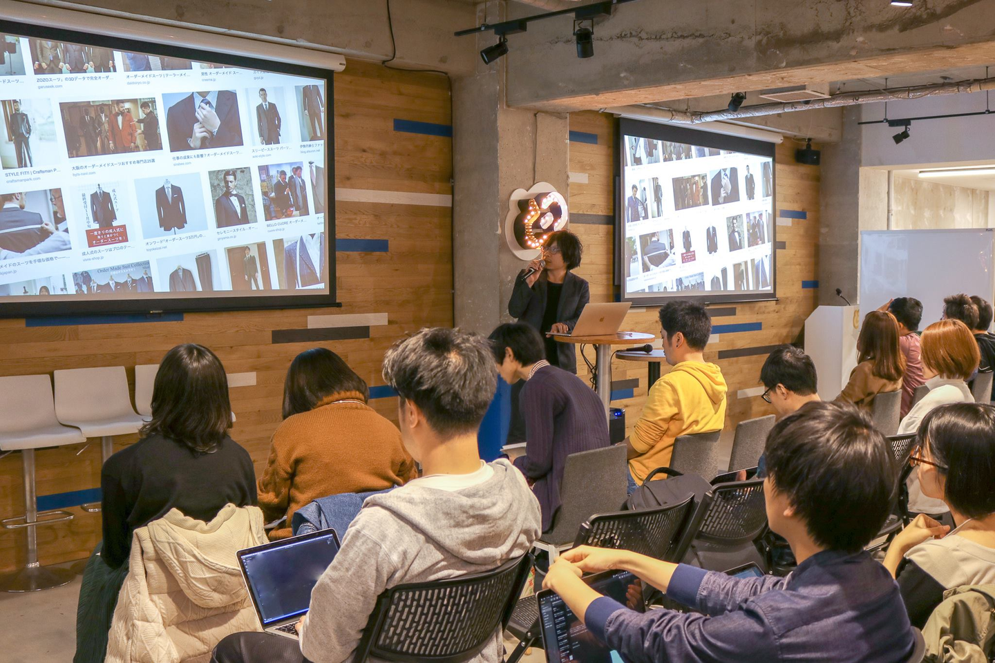 登壇は人材業界からSCOUTERさん、紳士服・アパレル業界からFABRIC TOKYOの2社で、弊社からはCTOの中筋と開発部デザイナーの管が登壇、また開発部デザイナーの池田がパネルディスカッションに登壇いたしました。