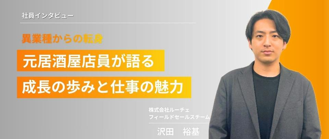 私たち株式会社ルーチェは「採用に関わる全ての人を支援し、顧客の事業成長に貢献する」をミッションに掲げ、採用に関する幅広いソリューションを手掛けています。弊社では、フィールドセールスの採用において「現在のスキル」よりも「マインド(考え方・姿勢)」を重視しています。今回は現場リーダーと人事担当の対談を通じて、ルーチェが求める「マインド」の正体と、そこで得られるキャリアの可能性についてお伝えします。【プロフィール】沢田 裕基:大学卒業後、居酒屋の店長を務め、2022年10月にルーチェに入社。現在はフィールドセールスチームのリーダーとして営業活動をしながら一部メンバーのマネジメント業務に携わる。...