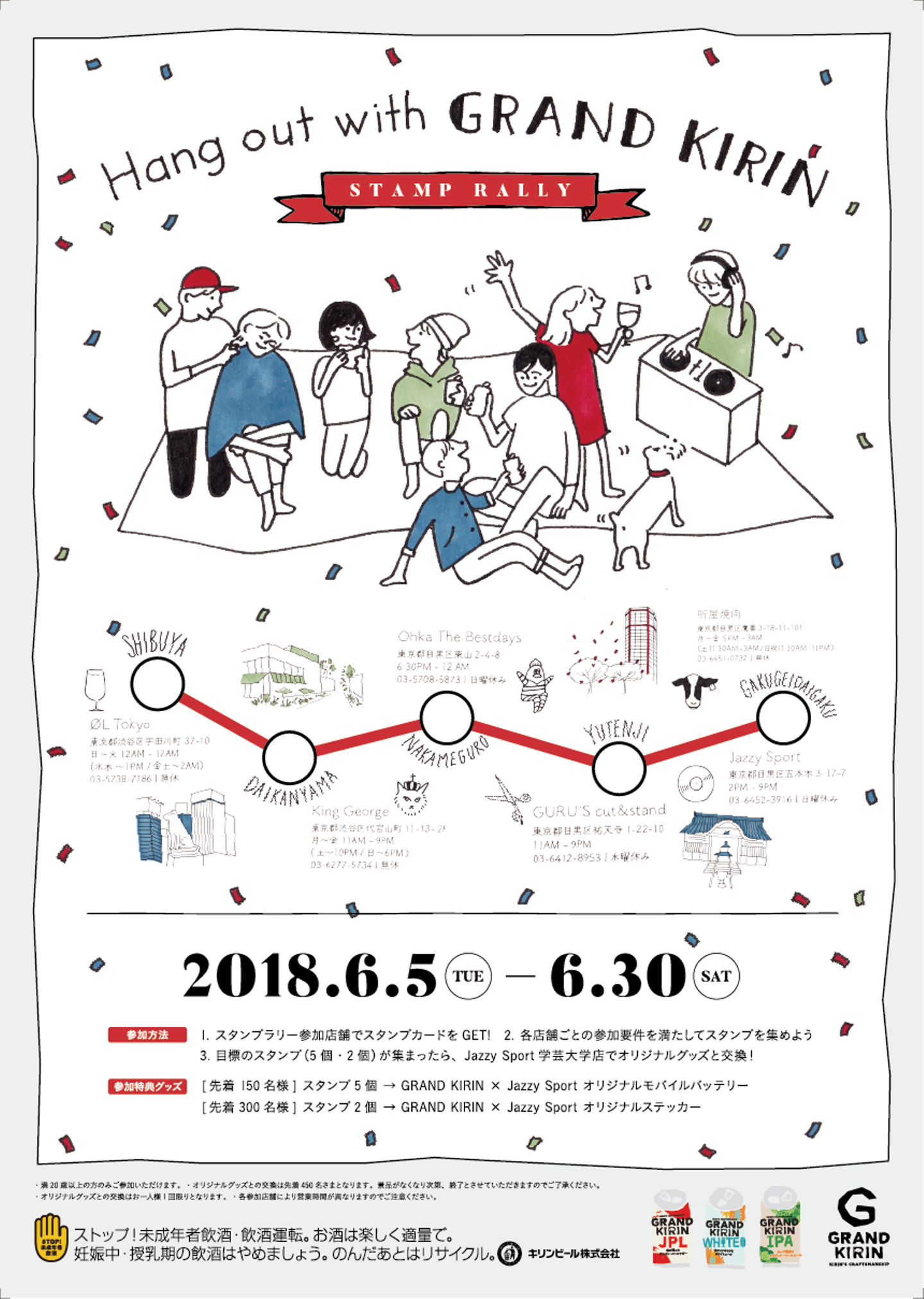 「FNMNL」(フェノメナル)が厳選した東急東横線沿線5駅のビールバーや音楽ショップ、バーバーなど6店舗で行われるスタンプラリー、『Hang Out With GRAND KIRIN』が、6/5(火)から6/30(土)まで開催される。