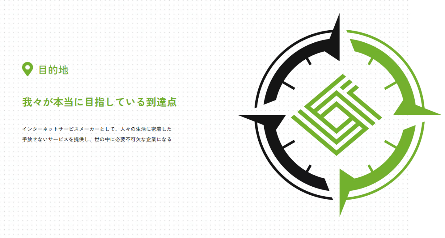 インターネットサービスメーカーとして、人々の生活に密着した手放せないサービスを提供し、世の中に必要不可欠な企業になる。